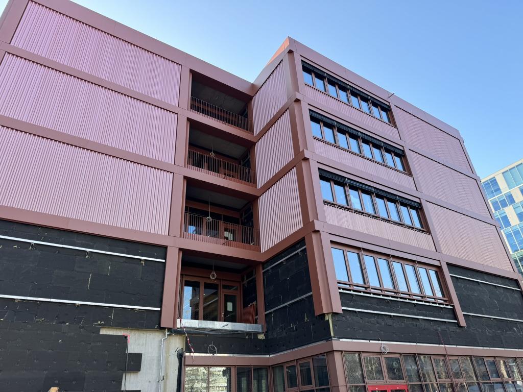 Fassade: Aluminium-Pfostenriegel-Fassade, Blechfassade, Betonfertigteilfassade, Holz-Alumium-Fenster